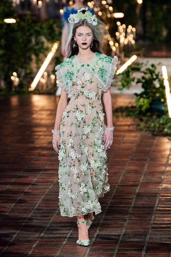 The fashion brand Carolina Herrera delighted its fans having a bright citreous color scheme and luxurious embroidery on dresses.